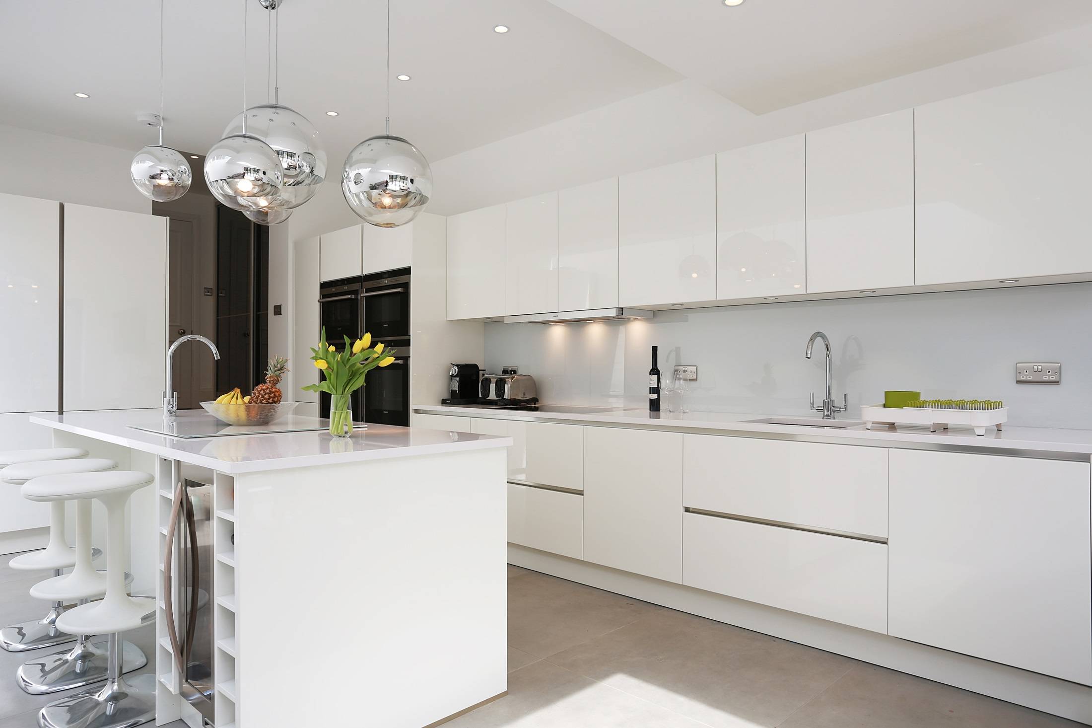 The beauty of a white kitchen is in its pristine appearance. Keeping it that way requires some care. Different door and countertop materials require a different level of care, with some lower maintenance than others, e.g. fingerprints are more obvious in white gloss than white matt, and white shaker doors with a handle are harder to clean than streamlined white handleless kitchen doors. White kitchens require: –